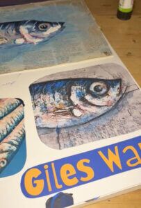 Another student wrote: “Hi! I absolutely love your work and have been doing some artist copies. This is my first year GCSE art project. The top fish is mine and then the lobster and the fish on the second page also! I have loved doing your work!” For Giles it is heartening to know that young students are looking at the work of artists and feeling compelled to explore their own ways of working. Hopefully for these, and all young artists, it is a springboard to a life-long love of the visual arts.
